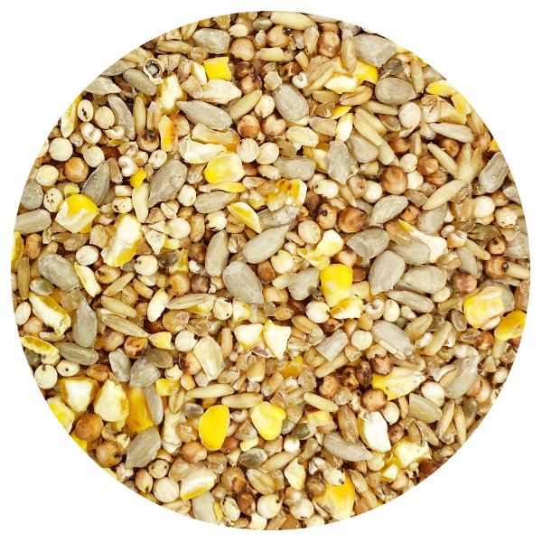 A carefully selected blend of Sunflower Seeds and Hearts, chopped nuts, cleaned and cut cereals, red and white Dari, Millet, coriander, peanuts, hemp, soya oil, and linseed, designed to attract all garden birds