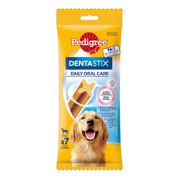 4 out of 5 dogs over the age of 3 have gum disease. PEDIGREE Daily DentaStix has a unique X shape and, when fed daily, its special texture is scientifically proven to help reduce tartar build-up by up to 80%. So, to help keep your dog’s teeth and gums healthy and strong, use great tasting PEDIGREE Daily DentaStix everyday.